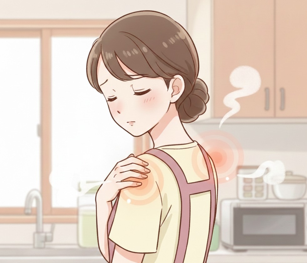 ☑肩が重くて、どちらかを動かすと痛いことがある